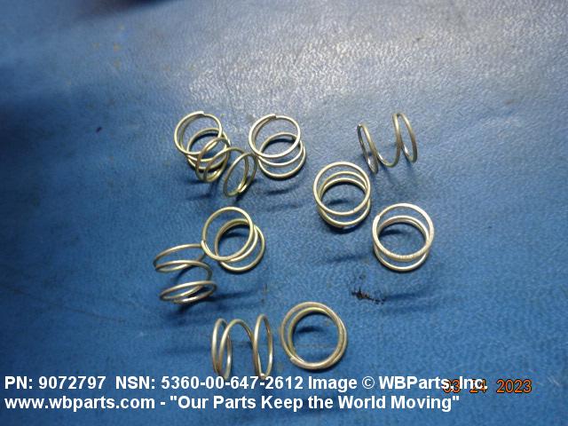5360-00-647-2612 An open coiled spring, wound in various forms and from different shapes and types of materials and finished at the ends, designed to provide resistance to compression forces. Excludes springs designed for thermal actuation (springs in which the torsion forces are designed to be counteracted by changes in temperature) and SPRING, REINFORCING, HOSE.20210050018Guns, through 30mm53600034Coil, Flat, Leaf, and Wire Springs