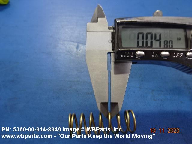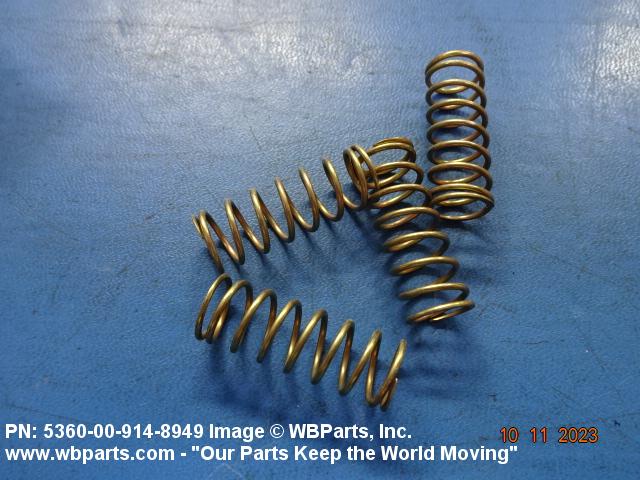 5360-00-914-8949 An open coiled spring, wound in various forms and from different shapes and types of materials and finished at the ends, designed to provide resistance to compression forces. Excludes springs designed for thermal actuation (springs in which the torsion forces are designed to be counteracted by changes in temperature) and SPRING, REINFORCING, HOSE.20210050018Guns, through 30mm53600034Coil, Flat, Leaf, and Wire Springs