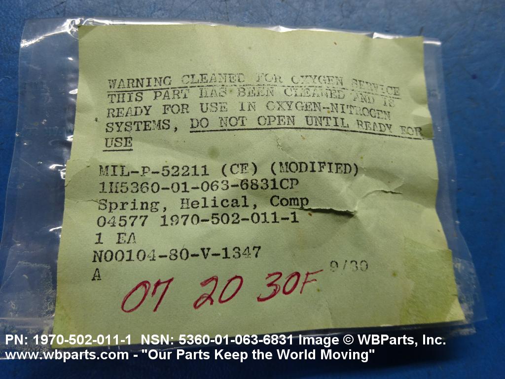 | 1970 502 011-1 | 1W506 | CARLETON TECHNOLOGIES INC DIV TAMPA FACILITY |