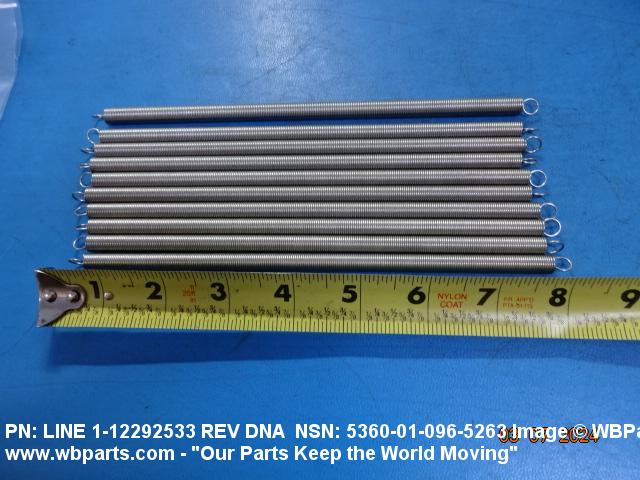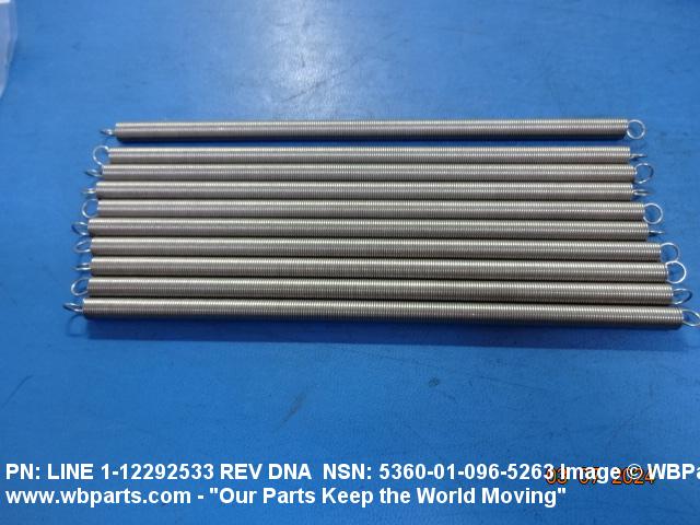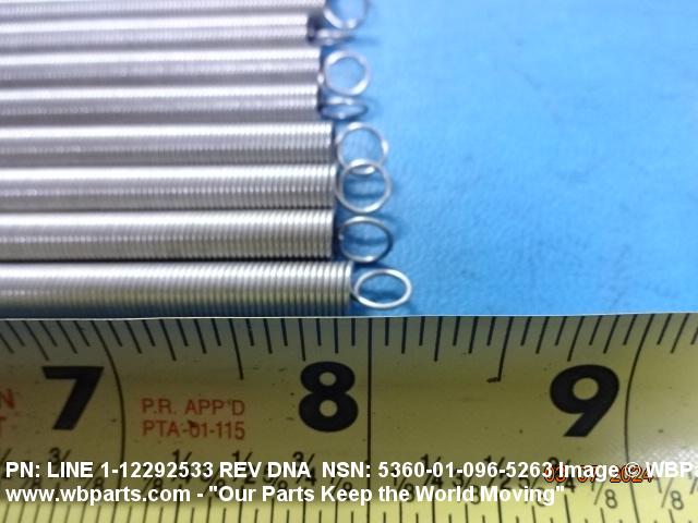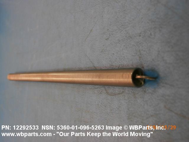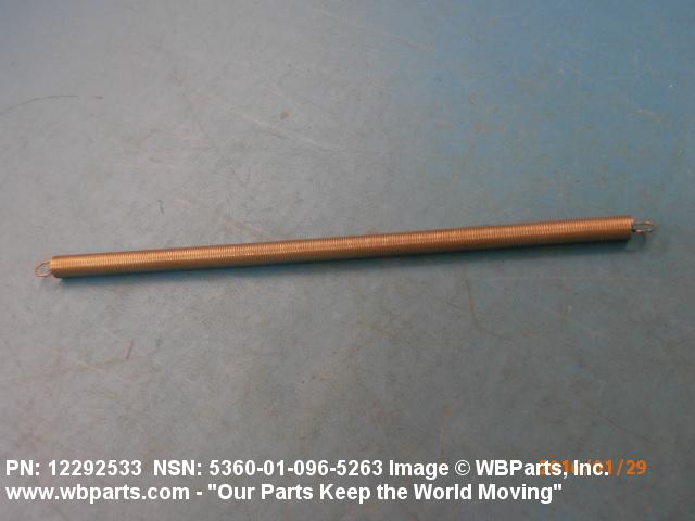 5360-01-096-5263 An open-or close-coiled spring, wound in various forms and from different shapes and types of materials and finished at the ends, so designed to provide resistance to pulling forces. The close-coiled springs may incorporate the special feature of initial tension created between the coils when wound so that an initial load must be applied to separate them. Excludes SPRING, REINFORCING, HOSE.20210050018Guns, through 30mm53600034Coil, Flat, Leaf, and Wire Springs