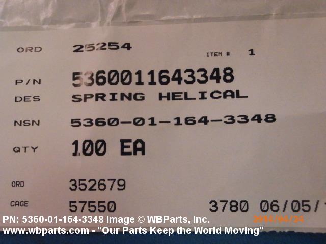 5360-01-164-3348 An open-or close-coiled spring, wound in various forms and from different shapes and types of materials and finished at the ends, so designed to provide resistance to pulling forces. The close-coiled springs may incorporate the special feature of initial tension created between the coils when wound so that an initial load must be applied to separate them. Excludes SPRING, REINFORCING, HOSE.20210050018Guns, through 30mm53600034Coil, Flat, Leaf, and Wire Springs