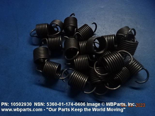 5360-01-174-0406 An open-or close-coiled spring, wound in various forms and from different shapes and types of materials and finished at the ends, so designed to provide resistance to pulling forces. The close-coiled springs may incorporate the special feature of initial tension created between the coils when wound so that an initial load must be applied to separate them. Excludes SPRING, REINFORCING, HOSE.20210050018Guns, through 30mm53600034Coil, Flat, Leaf, and Wire Springs