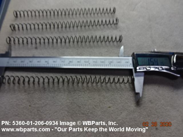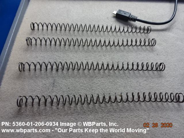 5360-01-206-0934 An open coiled spring, wound in various forms and from different shapes and types of materials and finished at the ends, designed to provide resistance to compression forces. Excludes springs designed for thermal actuation (springs in which the torsion forces are designed to be counteracted by changes in temperature) and SPRING, REINFORCING, HOSE.20210050018Guns, through 30mm53600034Coil, Flat, Leaf, and Wire Springs