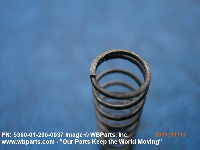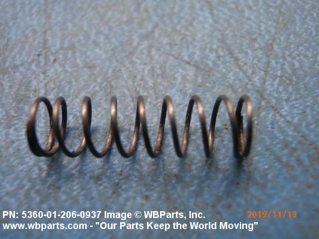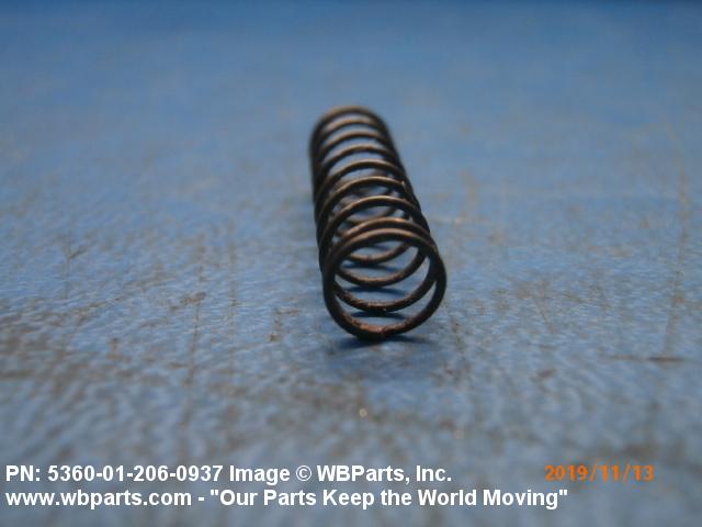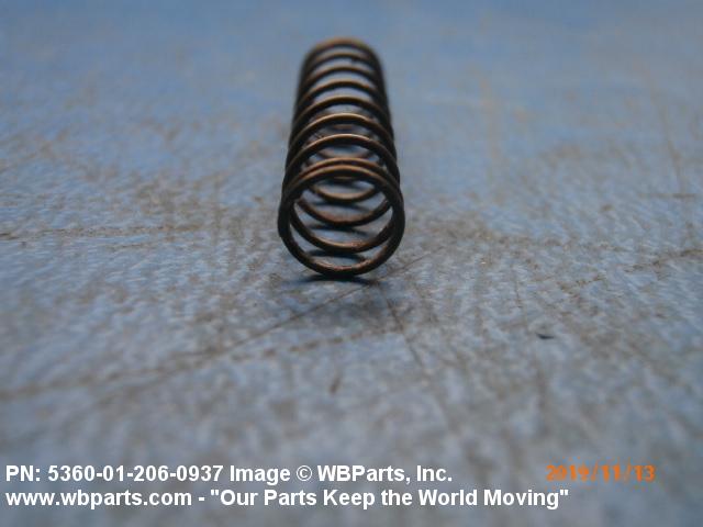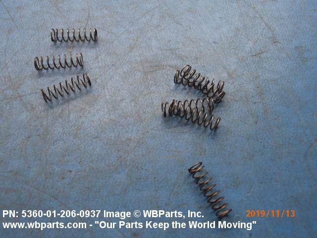 5360-01-206-0937 An open coiled spring, wound in various forms and from different shapes and types of materials and finished at the ends, designed to provide resistance to compression forces. Excludes springs designed for thermal actuation (springs in which the torsion forces are designed to be counteracted by changes in temperature) and SPRING, REINFORCING, HOSE.20210050018Guns, through 30mm53600034Coil, Flat, Leaf, and Wire Springs