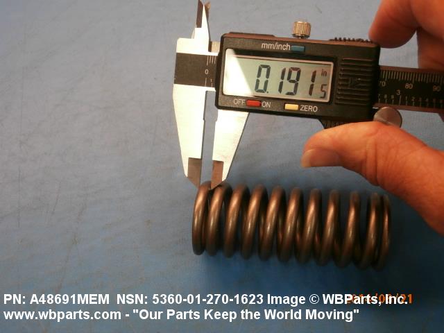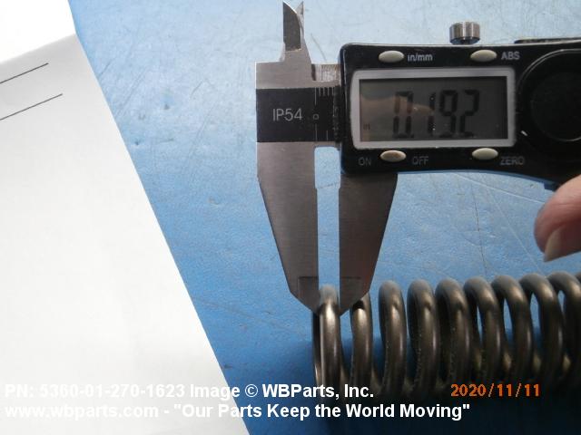 5360-01-270-1623 An open coiled spring, wound in various forms and from different shapes and types of materials and finished at the ends, designed to provide resistance to compression forces. Excludes springs designed for thermal actuation (springs in which the torsion forces are designed to be counteracted by changes in temperature) and SPRING, REINFORCING, HOSE.20210050018Guns, through 30mm53600034Coil, Flat, Leaf, and Wire Springs