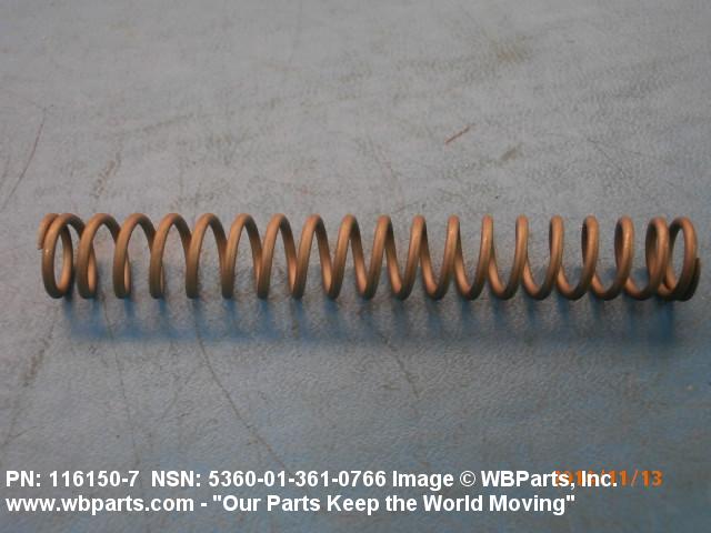 5360-01-361-0766 An open coiled spring, wound in various forms and from different shapes and types of materials and finished at the ends, designed to provide resistance to compression forces. Excludes springs designed for thermal actuation (springs in which the torsion forces are designed to be counteracted by changes in temperature) and SPRING, REINFORCING, HOSE.20210050018Guns, through 30mm53600034Coil, Flat, Leaf, and Wire Springs
