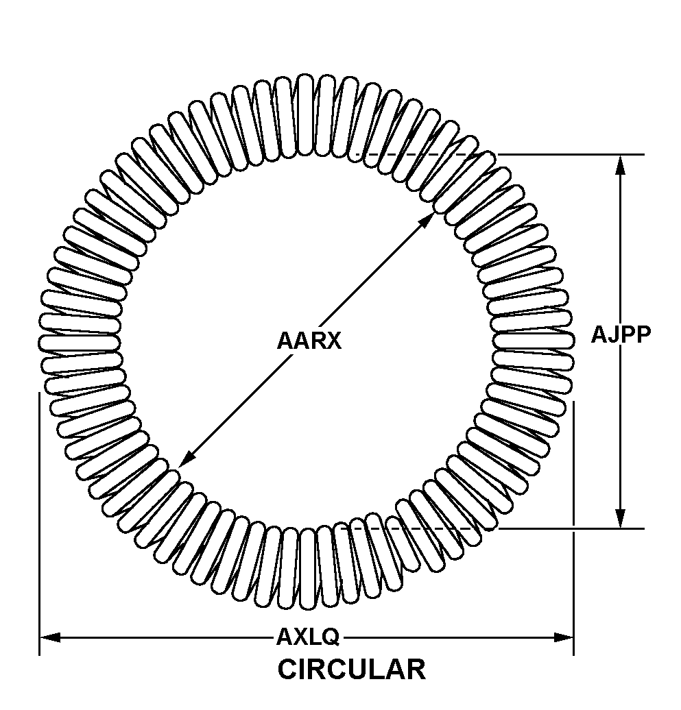 5360-01-386-8171 A close-coiled helical extension spring, with ends fastened together to form a circle, designed to impose compression stresses toward the center of the circle thus formed when uniformly expanded.