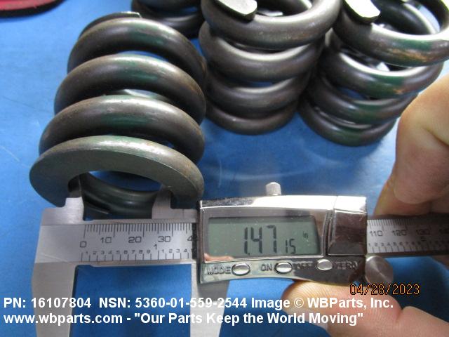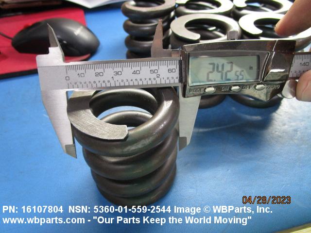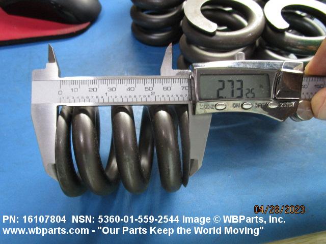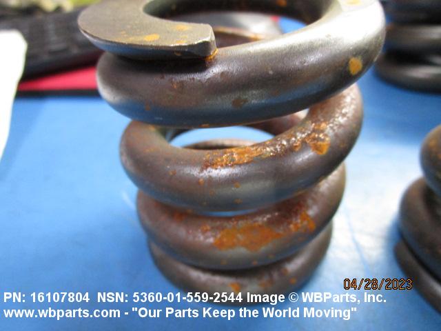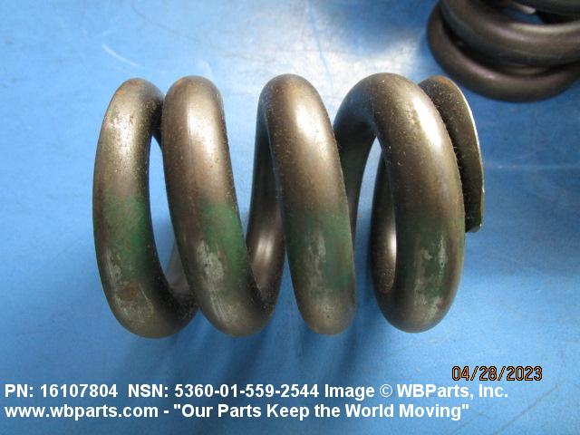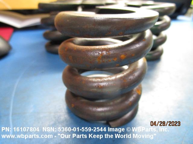 5360-01-559-2544 An open coiled spring, wound in various forms and from different shapes and types of materials and finished at the ends, designed to provide resistance to compression forces. Excludes springs designed for thermal actuation (springs in which the torsion forces are designed to be counteracted by changes in temperature) and SPRING, REINFORCING, HOSE.20210050018Guns, through 30mm53600034Coil, Flat, Leaf, and Wire Springs