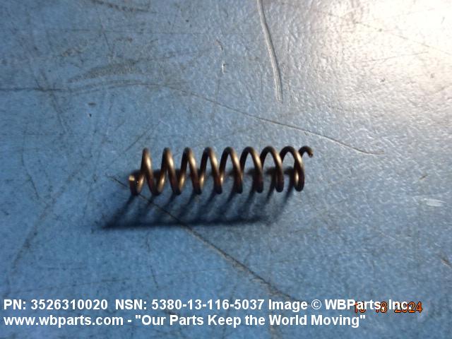 5360-13-116-5037 An open coiled spring, wound in various forms and from different shapes and types of materials and finished at the ends, designed to provide resistance to compression forces. Excludes springs designed for thermal actuation (springs in which the torsion forces are designed to be counteracted by changes in temperature) and SPRING, REINFORCING, HOSE.20210050018Guns, through 30mm53600034Coil, Flat, Leaf, and Wire Springs