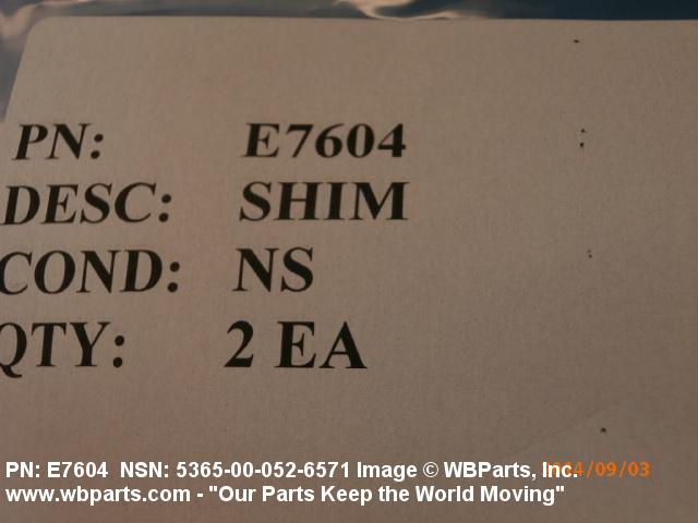 | NONSUPPLY ITEMS AND QUANTITIES | 81039 E-7604-1 SHIM 2 AND 81039 E-7604-2 SHIM 2 AND 81039 3-7604-3 SHIM 2 AND 81039 E-7604-4 SHIM 2 AND 81039 E-7604-5 SHIM 2 |