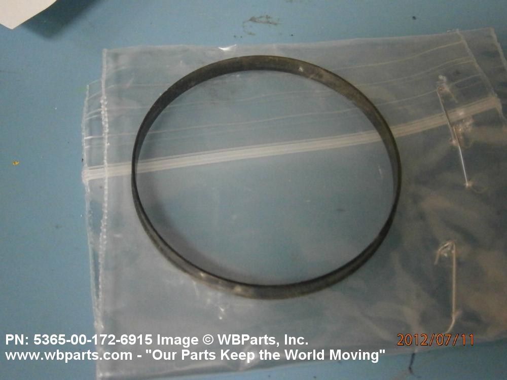 5365-00-172-6915 A circular-shaped item designed to maintain predetermined distance between assembled parts and/or for distributing pressure or preventing endwise movement between member parts. It has a solid cross-section and two flat parallel bearing surfaces. The distance between the bearing surfaces perpendicular to the axis of the centrally located hole shall not exceed 25 percent of the outside diameter. The diameter of the centrally located hole must exceed 75 percent of the outside diameter. Excludes laminated items. For items manufactured from impregnated graphite or lubricated nonmetallic materials, excluding felt or plastics, see GASKET. For items manufactured from lubricated plastics, see BEARING, WASHER, THRUST. For items manufactured from lubricated felt, see FELT, MECHANICAL, PREFORMED. Excludes DISK, VALVE; INSULATOR WASHER; and SHIM. See also SPACER, PLATE and SPACER, SLEEVE.