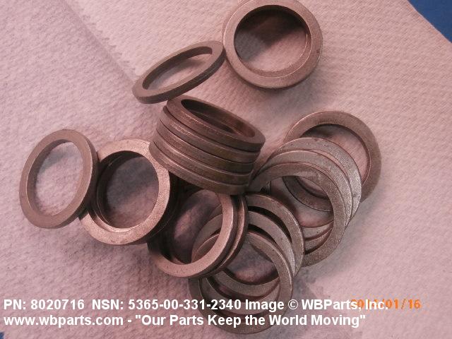 5365-00-331-2340 A circular-shaped item designed to maintain predetermined distance between assembled parts and/or for distributing pressure or preventing endwise movement between member parts. It has a solid cross-section and two flat parallel bearing surfaces. The distance between the bearing surfaces perpendicular to the axis of the centrally located hole shall not exceed 25 percent of the outside diameter. The diameter of the centrally located hole must exceed 75 percent of the outside diameter. Excludes laminated items. For items manufactured from impregnated graphite or lubricated nonmetallic materials, excluding felt or plastics, see GASKET. For items manufactured from lubricated plastics, see BEARING, WASHER, THRUST. For items manufactured from lubricated felt, see FELT, MECHANICAL, PREFORMED. Excludes DISK, VALVE; INSULATOR WASHER; and SHIM. See also SPACER, PLATE and SPACER, SLEEVE.