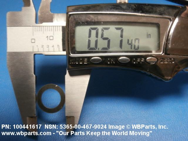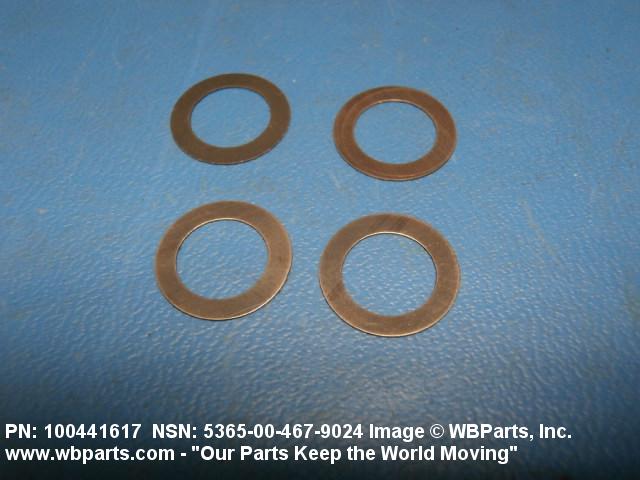 5365-00-467-9024 A thin flat metal or plastic item of various peripheral shapes having a solid or laminated cross-section. It is designed to maintain a predetermined distance between two surfaces. For round items without a hole and having a solid rectangular cross-section use DISK, SOLID, PLAIN. Items with either (1) a solid (not laminated) cross-section, or (2) a non-separable laminated cross-section with one hole centrally located, must have a thickness less than 0.006 inch (0.152 mm) for items less than 1/4 inch (6.35 mm) outside diameter or shortest distance across peripheral flats, and less than 0.016 inch (0.406 mm) for items 1/4 inch (6.35 mm) or more outside diameter, or shortest distance across peripheral flats. For items with thickness greater than those indicated above, see SPACER, PLATE; WASHER, FLAT and SPACER, RING. When thickness and/or outside diameter or shortest distance across peripheral flats is designated as a tolerance dimension, the maximum dimension will be used to determine compliance. See also SHIM STOCK, LAMINATED; SHIM STOCK ASSORTMENT, GASKET; and BEARING, WASHER, THRUST.