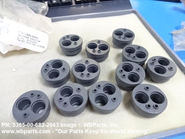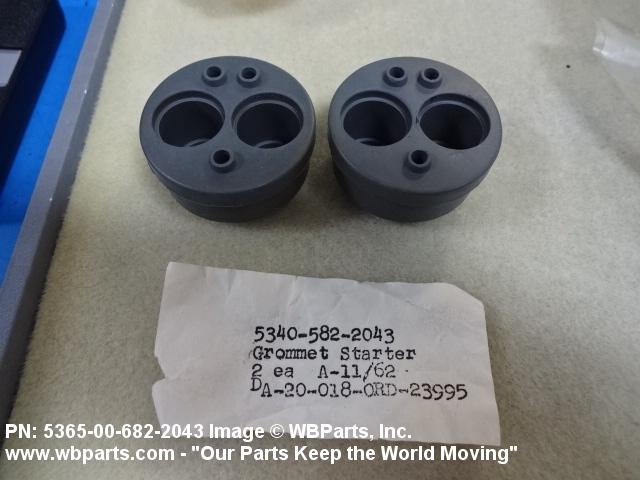 5365-00-682-2043 An item, made of rubber or plastic, usually cylindrical, with or without a flange, having one or more holes extending through its entire length, usually parallel to its axis. The overall length must exceed 25 percent of its diameter or a distance across the peripheral flats for items without a flange. For items formed of other material see BUSHING, SLEEVE. Excludes BUMPER, NONMETALLIC and GROMMET NONMETALLIC.