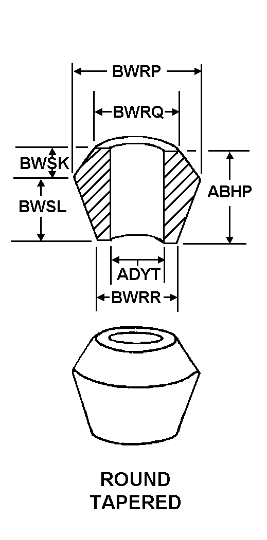 | TAPERED BODY SMALLEST DIAMETER | 1.625 INCHES NOMINAL |
