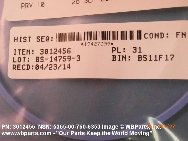 Part Alternates: 3012456, 5365-00-760-6353, 00-760-6353, 5365007606353, 007606353
