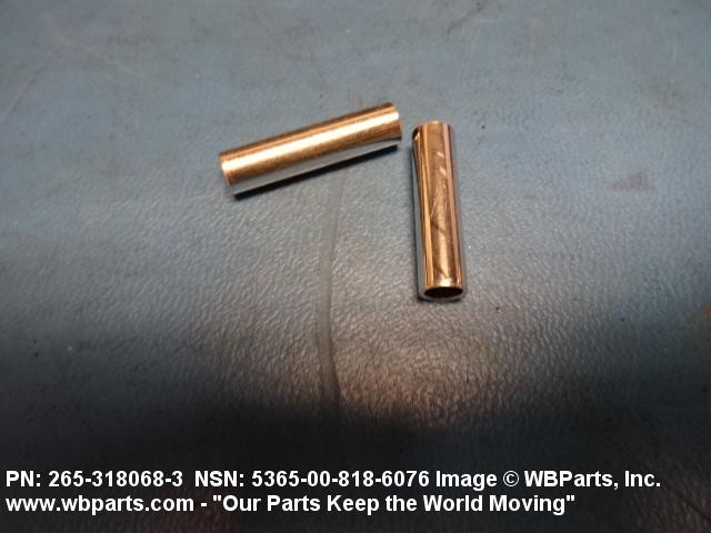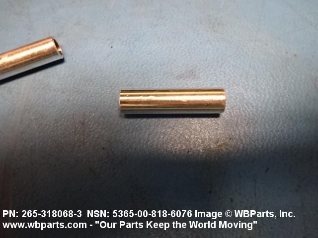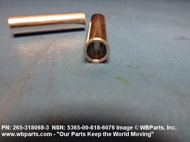 5365-00-818-6076 A tubular shaped item with a round or hexagon peripheral shape having two flat bearing surfaces perpendicular to the axis of the centrally located hole. It is designed to maintain a predetermined distance between assembled parts. The item may be with or without flange(s) of any peripheral shape. The overall length must exceed 25 percent of the outside diameter or distance across peripheral flats of the body. (When the length, outside diameter, and/or distance across peripheral flats are designed as a tolerance, the maximum dimension will be used to determine compliance). For items having other than a round or hexagon peripheral shape, see SPACER, PLATE. Excludes items with lubricating features, see BEARING, SLEEVE and BUSHING, SLEEVE. See also BUSHING, TAPERED; SPACER, RING; WASHER, FLAT; and WASHER, (as modified).