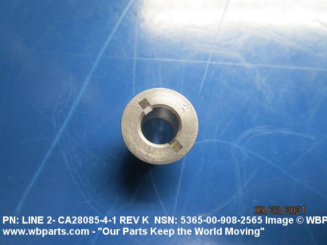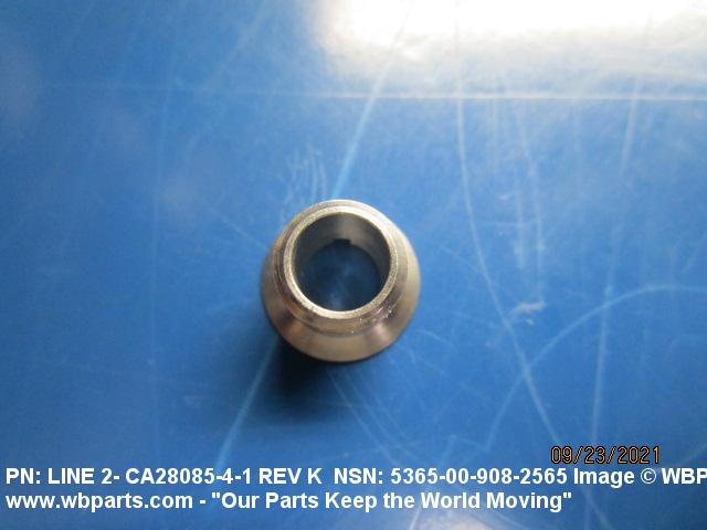 5365-00-908-2565 A straight nonfluid fitting with wrenching facilities on one end and external threads, other than pipe or hose series, on the other end. It has an unthreaded through hole in its axis which may be countersunk and/or counterbored on one or both ends. It is designed to accommodate a shaft, or the like, or used to reinforce a hole in a bulkhead, or the like. For similar items specifically designed for use in a stuffing box, see PACKING NUT. For nonfluid items with an internal thread, see INSERT, SCREW THREAD; or ADAPTER BUSHING. Excludes REDUCER, BOSS; and items designed to accommodate a tube or tube fitting.