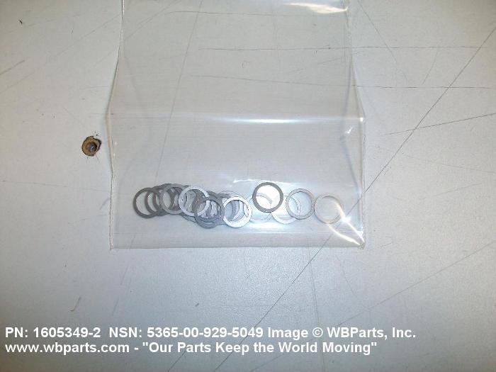 5365-00-929-5049 A thin flat metal or plastic item of various peripheral shapes having a solid or laminated cross-section. It is designed to maintain a predetermined distance between two surfaces. For round items without a hole and having a solid rectangular cross-section use DISK, SOLID, PLAIN. Items with either (1) a solid (not laminated) cross-section, or (2) a non-separable laminated cross-section with one hole centrally located, must have a thickness less than 0.006 inch (0.152 mm) for items less than 1/4 inch (6.35 mm) outside diameter or shortest distance across peripheral flats, and less than 0.016 inch (0.406 mm) for items 1/4 inch (6.35 mm) or more outside diameter, or shortest distance across peripheral flats. For items with thickness greater than those indicated above, see SPACER, PLATE; WASHER, FLAT and SPACER, RING. When thickness and/or outside diameter or shortest distance across peripheral flats is designated as a tolerance dimension, the maximum dimension will be used to determine compliance. See also SHIM STOCK, LAMINATED; SHIM STOCK ASSORTMENT, GASKET; and BEARING, WASHER, THRUST.