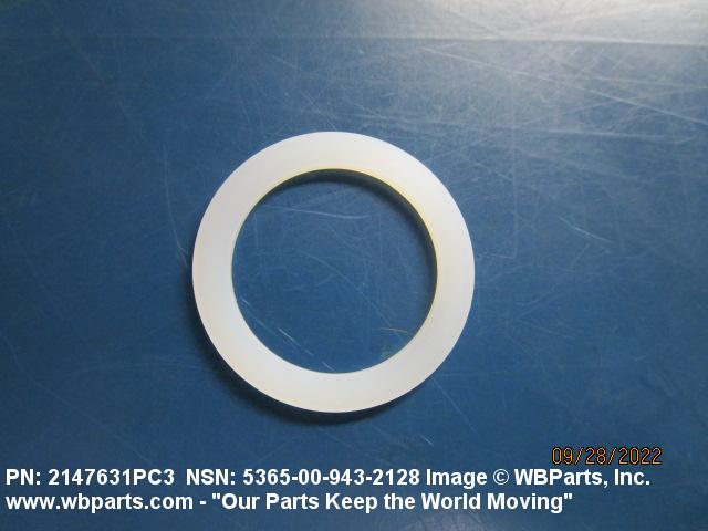 5365-00-943-2128 A circular-shaped item designed to maintain predetermined distance between assembled parts and/or for distributing pressure or preventing endwise movement between member parts. It has a solid cross-section and two flat parallel bearing surfaces. The distance between the bearing surfaces perpendicular to the axis of the centrally located hole shall not exceed 25 percent of the outside diameter. The diameter of the centrally located hole must exceed 75 percent of the outside diameter. Excludes laminated items. For items manufactured from impregnated graphite or lubricated nonmetallic materials, excluding felt or plastics, see GASKET. For items manufactured from lubricated plastics, see BEARING, WASHER, THRUST. For items manufactured from lubricated felt, see FELT, MECHANICAL, PREFORMED. Excludes DISK, VALVE; INSULATOR WASHER; and SHIM. See also SPACER, PLATE and SPACER, SLEEVE.