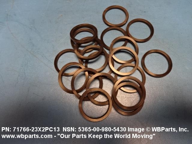 5365-00-980-5430 A circular-shaped item designed to maintain predetermined distance between assembled parts and/or for distributing pressure or preventing endwise movement between member parts. It has a solid cross-section and two flat parallel bearing surfaces. The distance between the bearing surfaces perpendicular to the axis of the centrally located hole shall not exceed 25 percent of the outside diameter. The diameter of the centrally located hole must exceed 75 percent of the outside diameter. Excludes laminated items. For items manufactured from impregnated graphite or lubricated nonmetallic materials, excluding felt or plastics, see GASKET. For items manufactured from lubricated plastics, see BEARING, WASHER, THRUST. For items manufactured from lubricated felt, see FELT, MECHANICAL, PREFORMED. Excludes DISK, VALVE; INSULATOR WASHER; and SHIM. See also SPACER, PLATE and SPACER, SLEEVE.