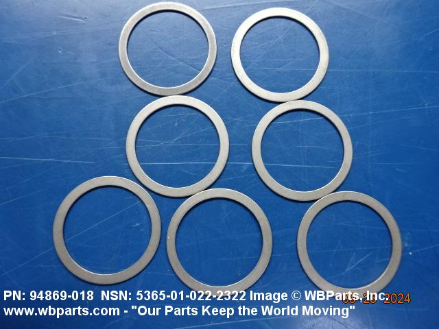 5365-01-022-2322 A circular-shaped item designed to maintain predetermined distance between assembled parts and/or for distributing pressure or preventing endwise movement between member parts. It has a solid cross-section and two flat parallel bearing surfaces. The distance between the bearing surfaces perpendicular to the axis of the centrally located hole shall not exceed 25 percent of the outside diameter. The diameter of the centrally located hole must exceed 75 percent of the outside diameter. Excludes laminated items. For items manufactured from impregnated graphite or lubricated nonmetallic materials, excluding felt or plastics, see GASKET. For items manufactured from lubricated plastics, see BEARING, WASHER, THRUST. For items manufactured from lubricated felt, see FELT, MECHANICAL, PREFORMED. Excludes DISK, VALVE; INSULATOR WASHER; and SHIM. See also SPACER, PLATE and SPACER, SLEEVE.