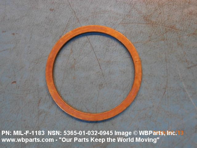 5365-01-032-0945 A circular-shaped item designed to maintain predetermined distance between assembled parts and/or for distributing pressure or preventing endwise movement between member parts. It has a solid cross-section and two flat parallel bearing surfaces. The distance between the bearing surfaces perpendicular to the axis of the centrally located hole shall not exceed 25 percent of the outside diameter. The diameter of the centrally located hole must exceed 75 percent of the outside diameter. Excludes laminated items. For items manufactured from impregnated graphite or lubricated nonmetallic materials, excluding felt or plastics, see GASKET. For items manufactured from lubricated plastics, see BEARING, WASHER, THRUST. For items manufactured from lubricated felt, see FELT, MECHANICAL, PREFORMED. Excludes DISK, VALVE; INSULATOR WASHER; and SHIM. See also SPACER, PLATE and SPACER, SLEEVE.