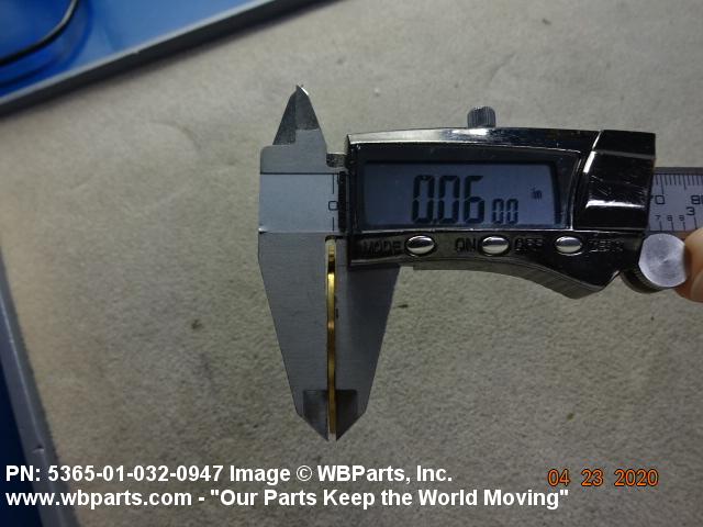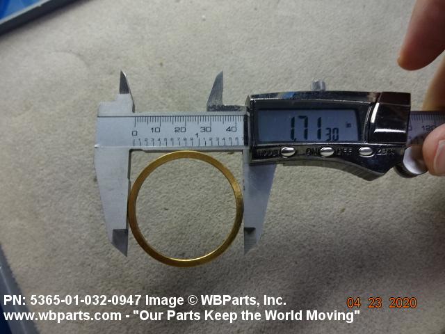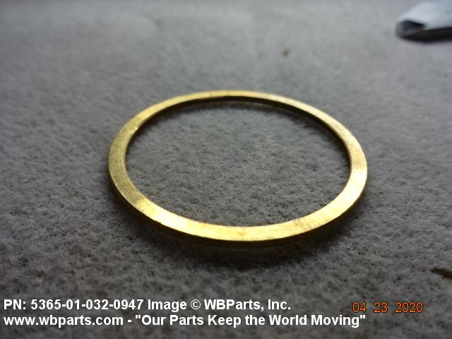 5365-01-032-0947 A circular-shaped item designed to maintain predetermined distance between assembled parts and/or for distributing pressure or preventing endwise movement between member parts. It has a solid cross-section and two flat parallel bearing surfaces. The distance between the bearing surfaces perpendicular to the axis of the centrally located hole shall not exceed 25 percent of the outside diameter. The diameter of the centrally located hole must exceed 75 percent of the outside diameter. Excludes laminated items. For items manufactured from impregnated graphite or lubricated nonmetallic materials, excluding felt or plastics, see GASKET. For items manufactured from lubricated plastics, see BEARING, WASHER, THRUST. For items manufactured from lubricated felt, see FELT, MECHANICAL, PREFORMED. Excludes DISK, VALVE; INSULATOR WASHER; and SHIM. See also SPACER, PLATE and SPACER, SLEEVE.