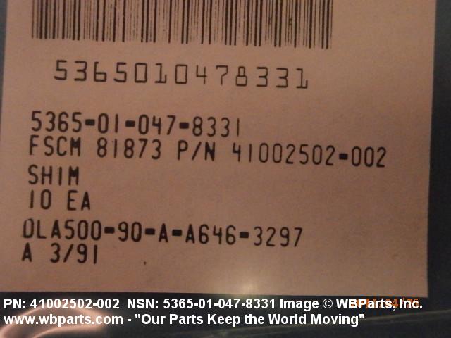 Part Alternates: 41002502002, 41002502-002, 5365-01-047-8331, 01-047-8331, 5365010478331, 010478331