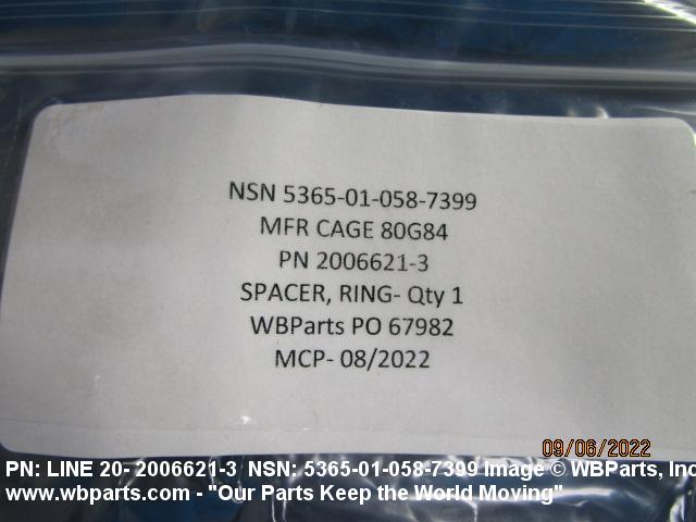 Part Alternates: 20066213, 2006621-3, 5365-01-058-7399, 01-058-7399, 5365010587399, 010587399