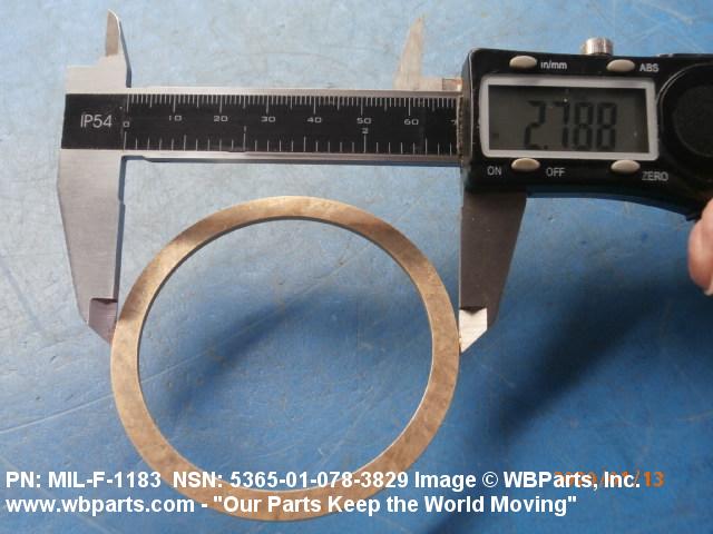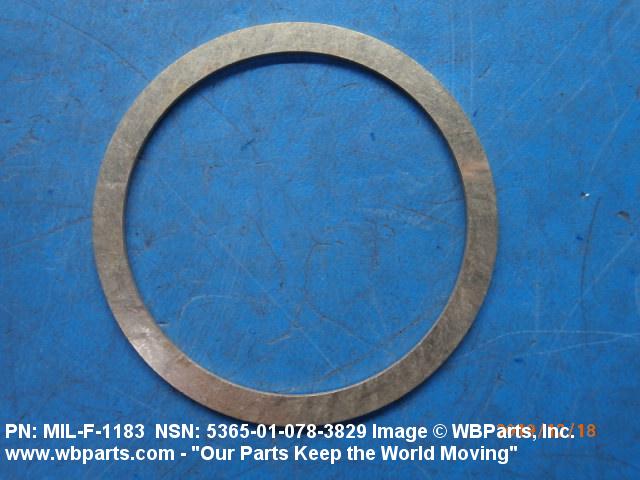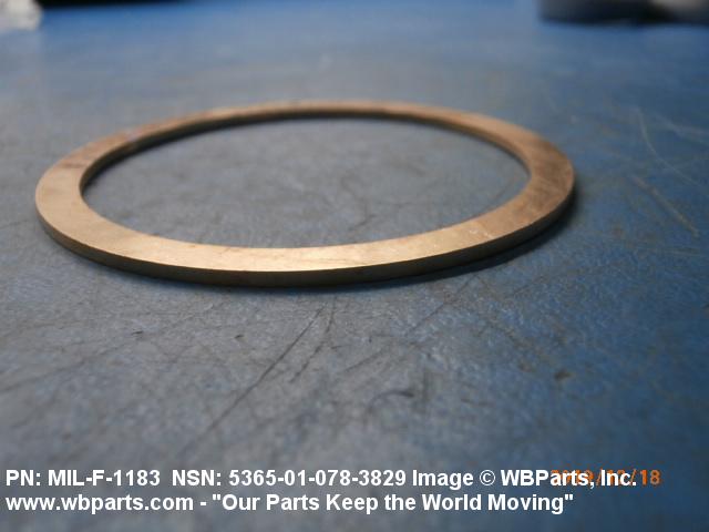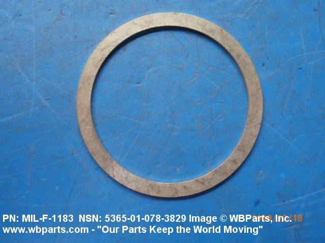 5365-01-078-3829 A circular-shaped item designed to maintain predetermined distance between assembled parts and/or for distributing pressure or preventing endwise movement between member parts. It has a solid cross-section and two flat parallel bearing surfaces. The distance between the bearing surfaces perpendicular to the axis of the centrally located hole shall not exceed 25 percent of the outside diameter. The diameter of the centrally located hole must exceed 75 percent of the outside diameter. Excludes laminated items. For items manufactured from impregnated graphite or lubricated nonmetallic materials, excluding felt or plastics, see GASKET. For items manufactured from lubricated plastics, see BEARING, WASHER, THRUST. For items manufactured from lubricated felt, see FELT, MECHANICAL, PREFORMED. Excludes DISK, VALVE; INSULATOR WASHER; and SHIM. See also SPACER, PLATE and SPACER, SLEEVE.