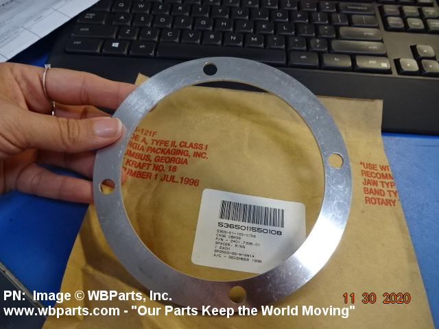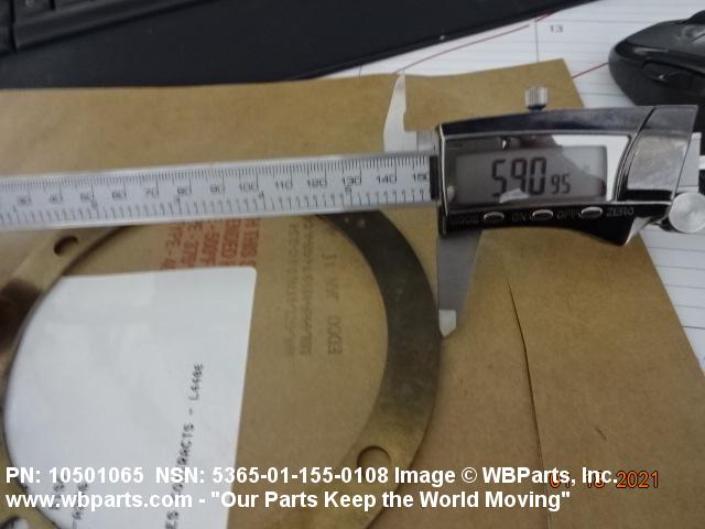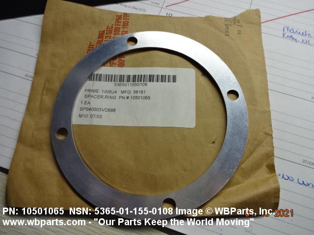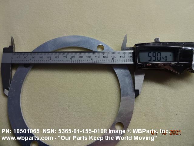 5365-01-155-0108 A circular-shaped item designed to maintain predetermined distance between assembled parts and/or for distributing pressure or preventing endwise movement between member parts. It has a solid cross-section and two flat parallel bearing surfaces. The distance between the bearing surfaces perpendicular to the axis of the centrally located hole shall not exceed 25 percent of the outside diameter. The diameter of the centrally located hole must exceed 75 percent of the outside diameter. Excludes laminated items. For items manufactured from impregnated graphite or lubricated nonmetallic materials, excluding felt or plastics, see GASKET. For items manufactured from lubricated plastics, see BEARING, WASHER, THRUST. For items manufactured from lubricated felt, see FELT, MECHANICAL, PREFORMED. Excludes DISK, VALVE; INSULATOR WASHER; and SHIM. See also SPACER, PLATE and SPACER, SLEEVE.