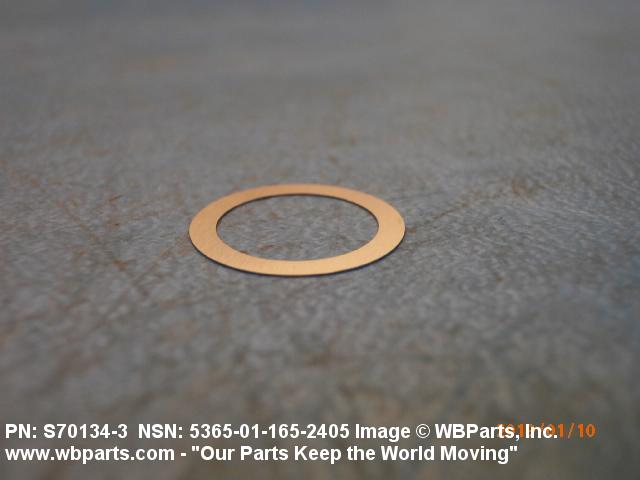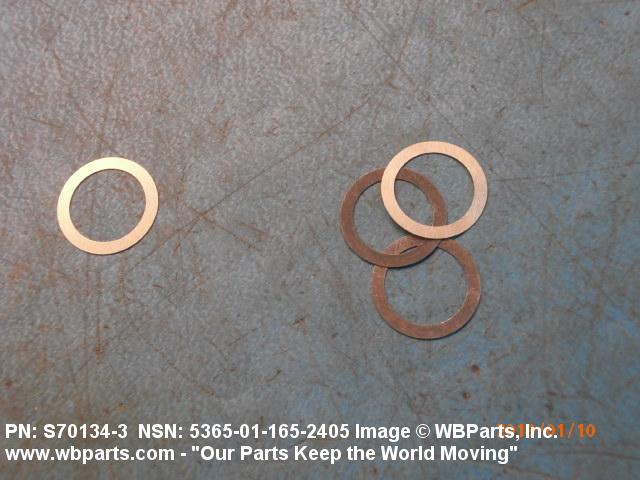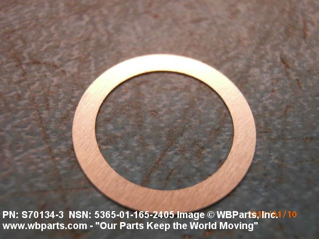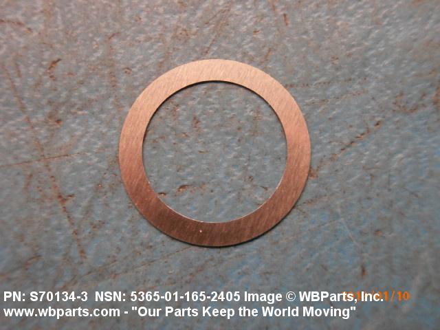 5365-01-165-2405 A thin flat metal or plastic item of various peripheral shapes having a solid or laminated cross-section. It is designed to maintain a predetermined distance between two surfaces. For round items without a hole and having a solid rectangular cross-section use DISK, SOLID, PLAIN. Items with either (1) a solid (not laminated) cross-section, or (2) a non-separable laminated cross-section with one hole centrally located, must have a thickness less than 0.006 inch (0.152 mm) for items less than 1/4 inch (6.35 mm) outside diameter or shortest distance across peripheral flats, and less than 0.016 inch (0.406 mm) for items 1/4 inch (6.35 mm) or more outside diameter, or shortest distance across peripheral flats. For items with thickness greater than those indicated above, see SPACER, PLATE; WASHER, FLAT and SPACER, RING. When thickness and/or outside diameter or shortest distance across peripheral flats is designated as a tolerance dimension, the maximum dimension will be used to determine compliance. See also SHIM STOCK, LAMINATED; SHIM STOCK ASSORTMENT, GASKET; and BEARING, WASHER, THRUST.