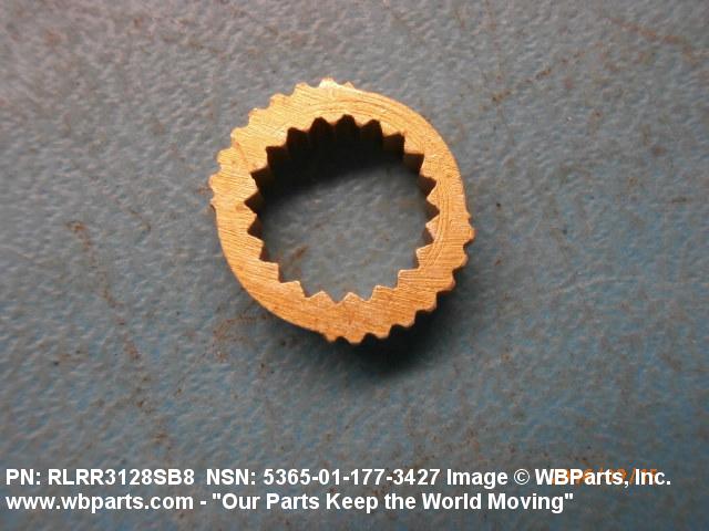 5365-01-177-3427 A locking device which is serrated on the inside and outside diameters. It may have outer serrations omitted on one or two sides for close edge installation. The inner serrations engage the mating serrations of bolts, inserts, nuts, studs or similar items to be locked in place. The outer serrations broach their way into parent material when driven or pressed into place.