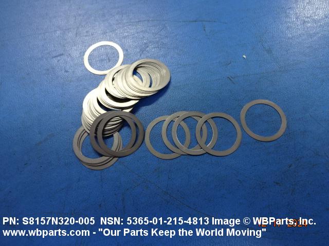 5365-01-215-4813 A thin flat metal or plastic item of various peripheral shapes having a solid or laminated cross-section. It is designed to maintain a predetermined distance between two surfaces. For round items without a hole and having a solid rectangular cross-section use DISK, SOLID, PLAIN. Items with either (1) a solid (not laminated) cross-section, or (2) a non-separable laminated cross-section with one hole centrally located, must have a thickness less than 0.006 inch (0.152 mm) for items less than 1/4 inch (6.35 mm) outside diameter or shortest distance across peripheral flats, and less than 0.016 inch (0.406 mm) for items 1/4 inch (6.35 mm) or more outside diameter, or shortest distance across peripheral flats. For items with thickness greater than those indicated above, see SPACER, PLATE; WASHER, FLAT and SPACER, RING. When thickness and/or outside diameter or shortest distance across peripheral flats is designated as a tolerance dimension, the maximum dimension will be used to determine compliance. See also SHIM STOCK, LAMINATED; SHIM STOCK ASSORTMENT, GASKET; and BEARING, WASHER, THRUST.