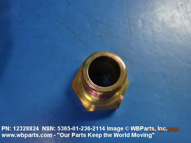 5365-01-236-2114 A straight nonfluid fitting with wrenching facilities on one end and external threads, other than pipe or hose series, on the other end. It has an unthreaded through hole in its axis which may be countersunk and/or counterbored on one or both ends. It is designed to accommodate a shaft, or the like, or used to reinforce a hole in a bulkhead, or the like. For similar items specifically designed for use in a stuffing box, see PACKING NUT. For nonfluid items with an internal thread, see INSERT, SCREW THREAD; or ADAPTER BUSHING. Excludes REDUCER, BOSS; and items designed to accommodate a tube or tube fitting.