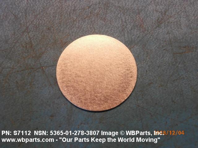 5365-01-278-3807 A thin flat metal or plastic item of various peripheral shapes having a solid or laminated cross-section. It is designed to maintain a predetermined distance between two surfaces. For round items without a hole and having a solid rectangular cross-section use DISK, SOLID, PLAIN. Items with either (1) a solid (not laminated) cross-section, or (2) a non-separable laminated cross-section with one hole centrally located, must have a thickness less than 0.006 inch (0.152 mm) for items less than 1/4 inch (6.35 mm) outside diameter or shortest distance across peripheral flats, and less than 0.016 inch (0.406 mm) for items 1/4 inch (6.35 mm) or more outside diameter, or shortest distance across peripheral flats. For items with thickness greater than those indicated above, see SPACER, PLATE; WASHER, FLAT and SPACER, RING. When thickness and/or outside diameter or shortest distance across peripheral flats is designated as a tolerance dimension, the maximum dimension will be used to determine compliance. See also SHIM STOCK, LAMINATED; SHIM STOCK ASSORTMENT, GASKET; and BEARING, WASHER, THRUST.