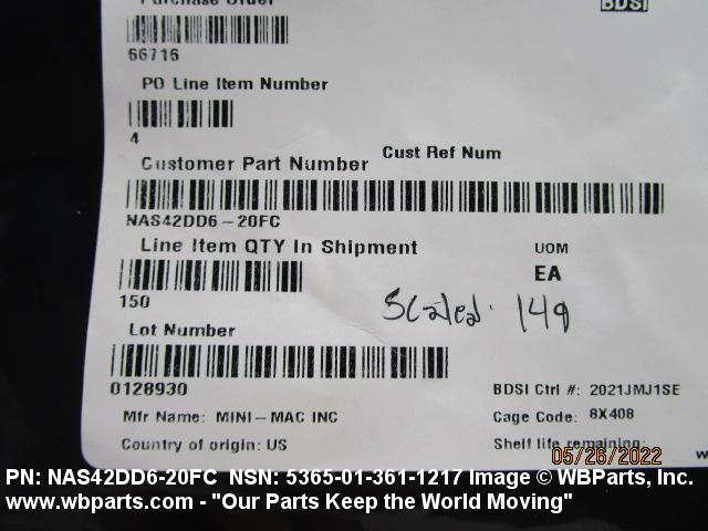 Part Alternates: NAS42DD620FC, NAS42DD6-20FC, 5365-01-361-1217, 01-361-1217, 5365013611217, 013611217
