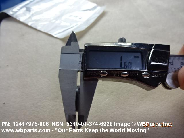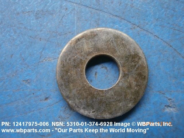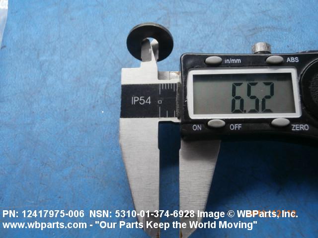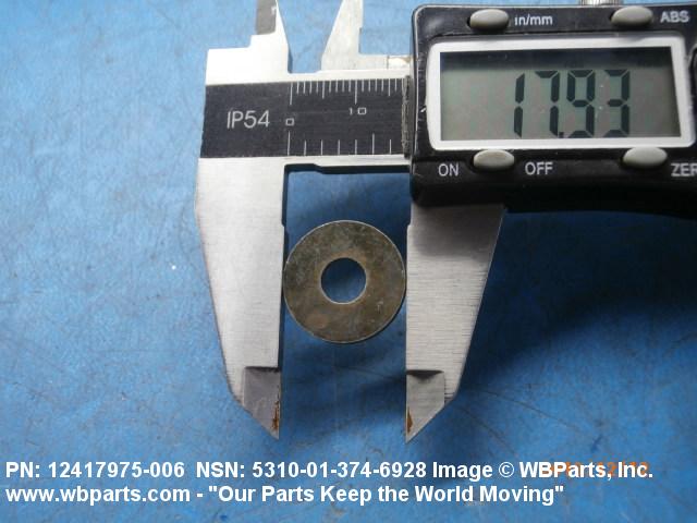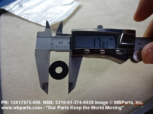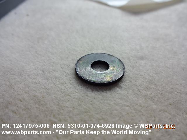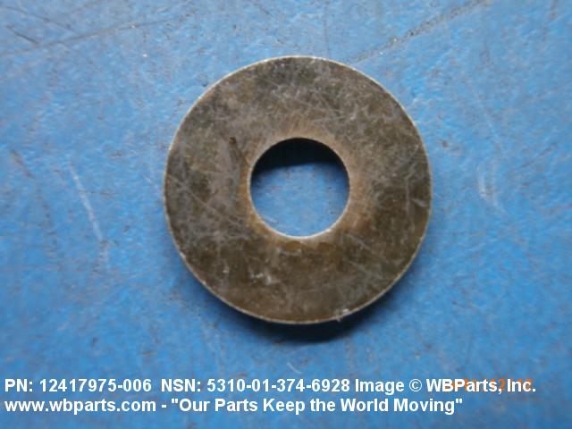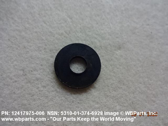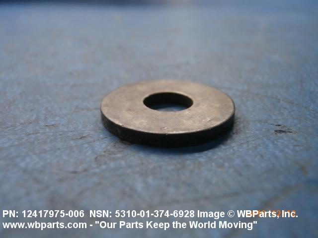 5365-01-374-6928 A washer having a centrally located hole with a solid or laminated cross-section and two flat parallel bearing surfaces. The hole must be 75 percent or less than the largest dimension and the bearing surface finish is greater than 32 microinch (0.8 micrometer). The thickness cannot exceed 25 percent of the largest outside dimension. When the largest outside dimension is less than 1/4 inch or 6mm, the thickness must be 0.006 inches (0.15mm) or greater and for items 1/4 inch (6mm) or larger, the thickness must be 0.016 inches (0.4mm) or greater. The maximum tolerance is applied to dimensions and used as a determining factor. Items with separable lamination use SHIM. For items fabricated from ceramic or electrically rated materials by specification or industry standards use INSULATOR (1), WASHER. Excludes DISK, VALVE, graphite impregnated and lubricated items.