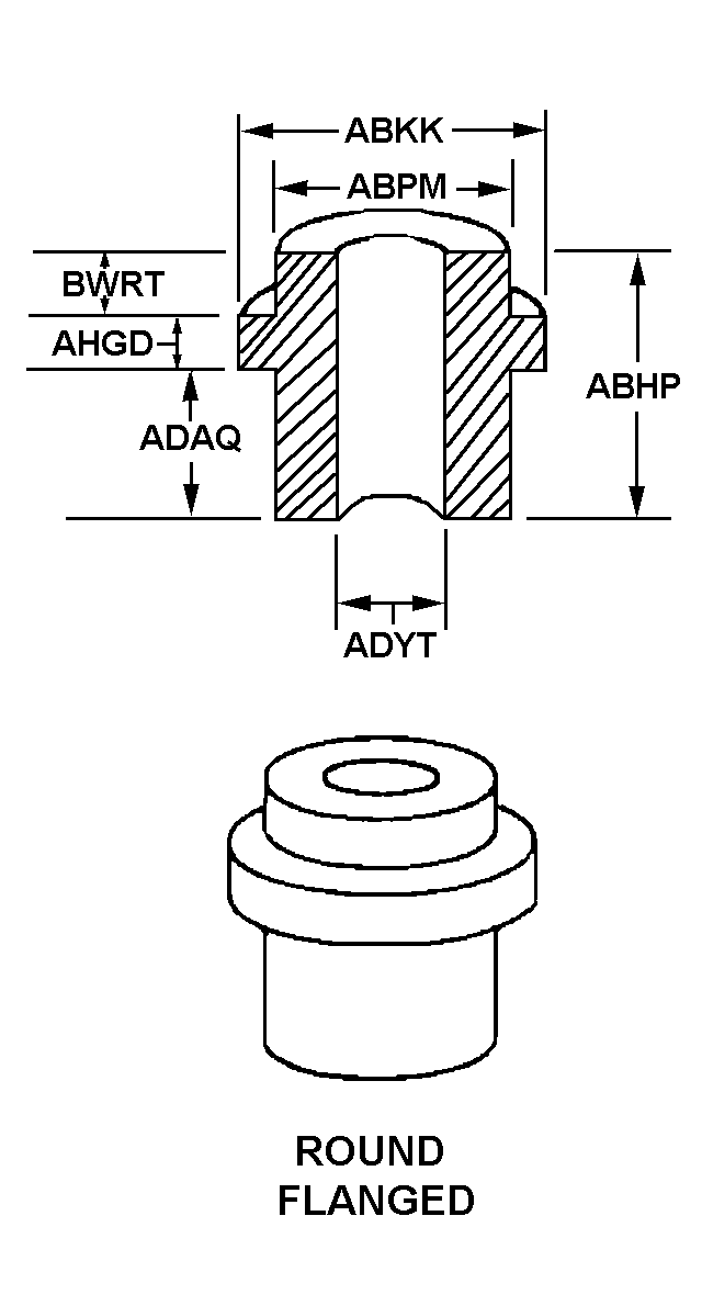 5365-01-381-2215 An item, made of rubber or plastic, usually cylindrical, with or without a flange, having one or more holes extending through its entire length, usually parallel to its axis. The overall length must exceed 25 percent of its diameter or a distance across the peripheral flats for items without a flange. For items formed of other material see BUSHING, SLEEVE. Excludes BUMPER, NONMETALLIC and GROMMET NONMETALLIC.
