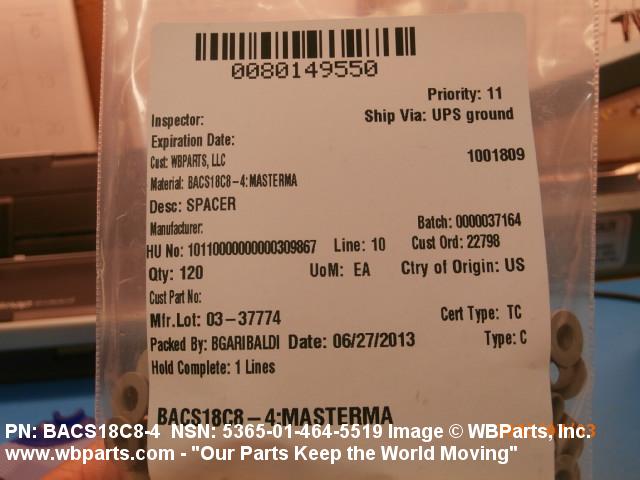 Part Alternates: BACS18C84, BACS18C8-4, 5365-01-464-5519, 01-464-5519, 5365014645519, 014645519