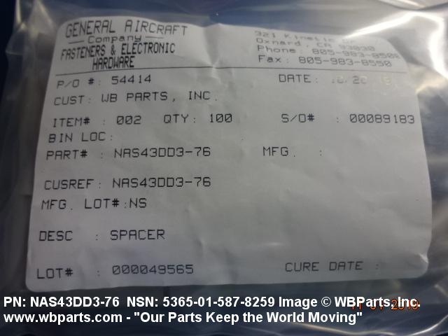 Part Alternates: NAS43DD376, NAS43DD3-76, 5365-01-587-8259, 01-587-8259, 5365015878259, 015878259