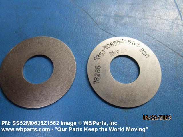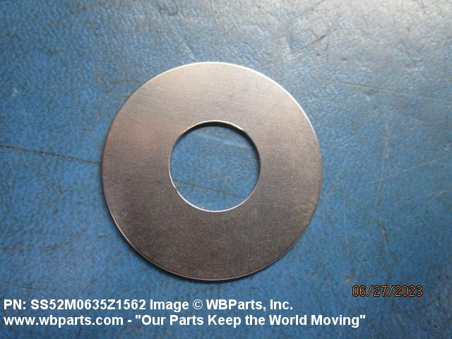 5365-01-642-5097 A thin flat metal or plastic item of various peripheral shapes having a solid or laminated cross-section. It is designed to maintain a predetermined distance between two surfaces. For round items without a hole and having a solid rectangular cross-section use DISK, SOLID, PLAIN. Items with either (1) a solid (not laminated) cross-section, or (2) a non-separable laminated cross-section with one hole centrally located, must have a thickness less than 0.006 inch (0.152 mm) for items less than 1/4 inch (6.35 mm) outside diameter or shortest distance across peripheral flats, and less than 0.016 inch (0.406 mm) for items 1/4 inch (6.35 mm) or more outside diameter, or shortest distance across peripheral flats. For items with thickness greater than those indicated above, see SPACER, PLATE; WASHER, FLAT and SPACER, RING. When thickness and/or outside diameter or shortest distance across peripheral flats is designated as a tolerance dimension, the maximum dimension will be used to determine compliance. See also SHIM STOCK, LAMINATED; SHIM STOCK ASSORTMENT, GASKET; and BEARING, WASHER, THRUST.