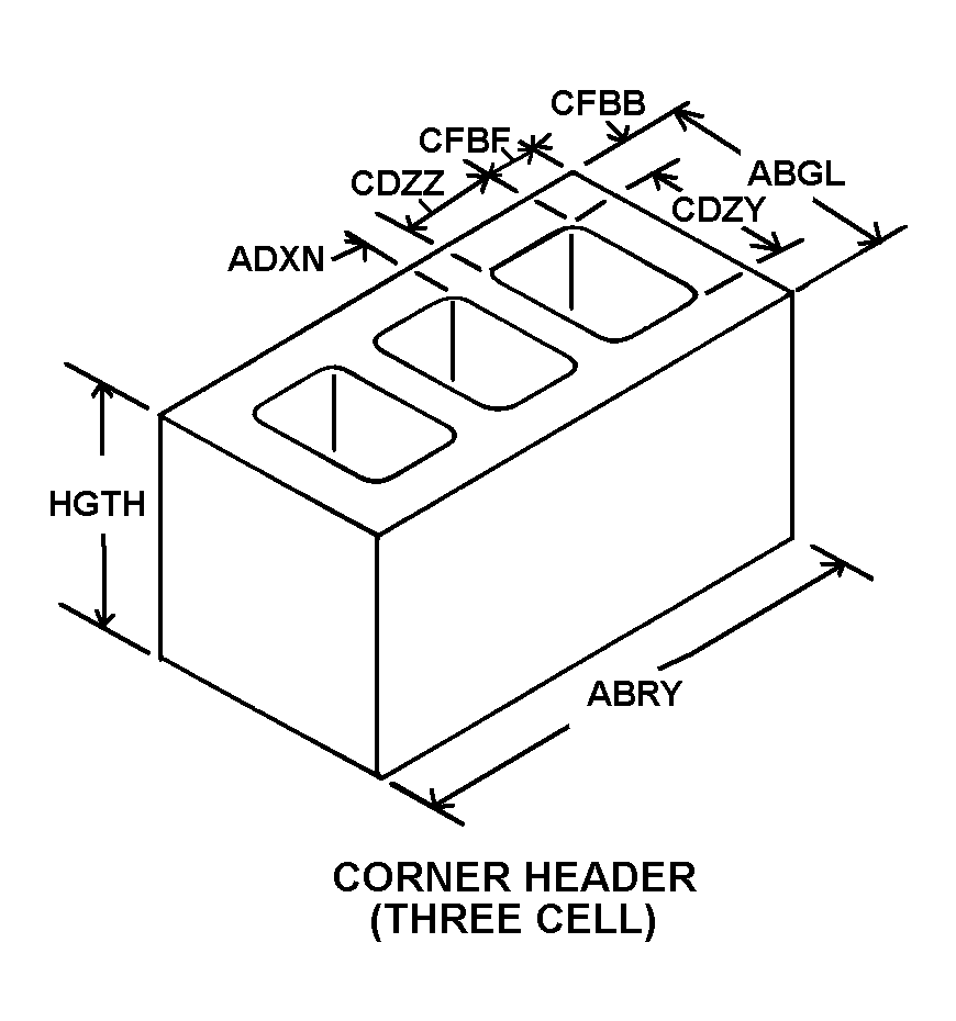 5620-00-297-5378 A precast concrete block, basically rectangular, with one or more cells extending vertically through the block. It is used in the construction of masonry walls.