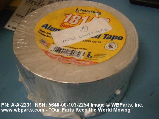5640-00-103-2254 A narrow strip of aluminum foil, plastic, cloth, or similar material, six inches (152.4 mm) or less in width. Generally in roll form with or without liner, designed to be affixed to an object by adhesion. It is used to cover pipe and similar objects. Under normal atmospheric conditions, it tends to resist any physical change. It may have a temerature rating and tensile strength. It does not contain coding signification, legendary characters, or printed data of any type. excludes: TAPE, PRESSURE SENSITIVE ADHESIVE; TAPE, INSULATION, ELECTRICAL; TAPE, ADHESIVE, RUBBER; TAPE, SEMI-CONDUCTING, ELECTRICAL; and TAPE, SHIELDING, ELECTRICAL.