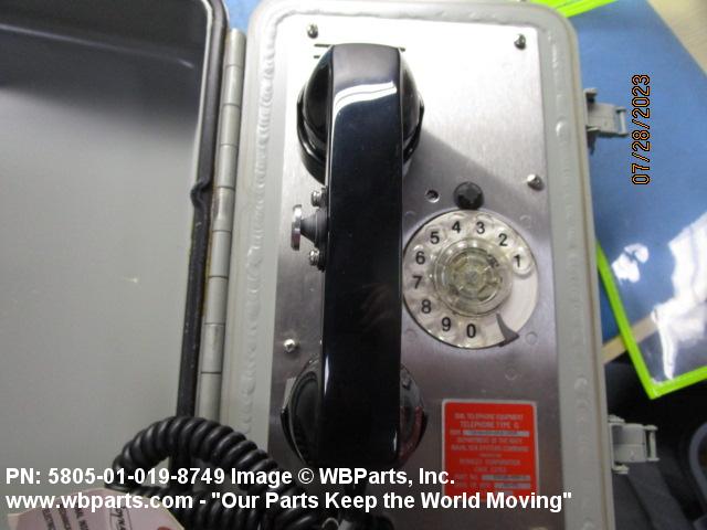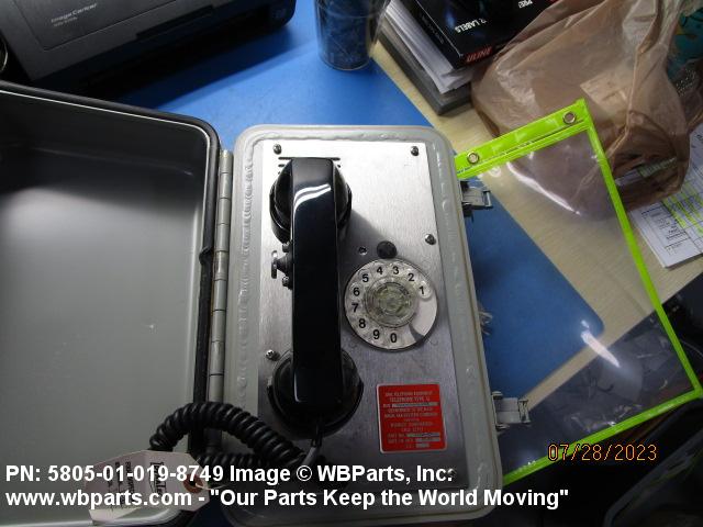 5805-01-019-8749 A combination of items consisting of a handset or telephone, a switch and its associated wiring, with self-contained or separate ringer box. Includes wall telephones. It is primarily used for voice communications.