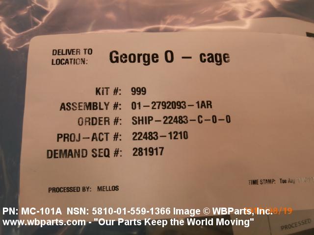 NSN 5810-01-559-1366 MC101A, MC-101A, 1627498321