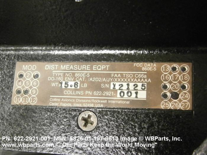 Part Alternates: 6222921001, 622-2921-001, 5826-01-197-9613, 01-197-9613, 5826011979613, 011979613
