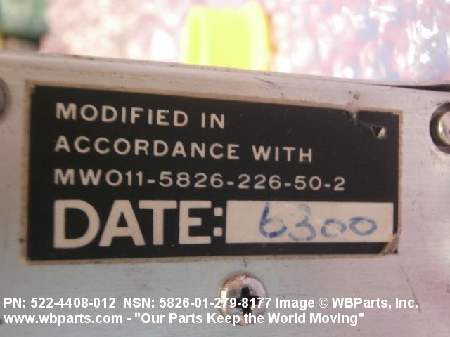| 522-4408-012 | 13499 | ROCKWELL COLLINS, INC. DBA GOVERNMENT SYSTEMS |
