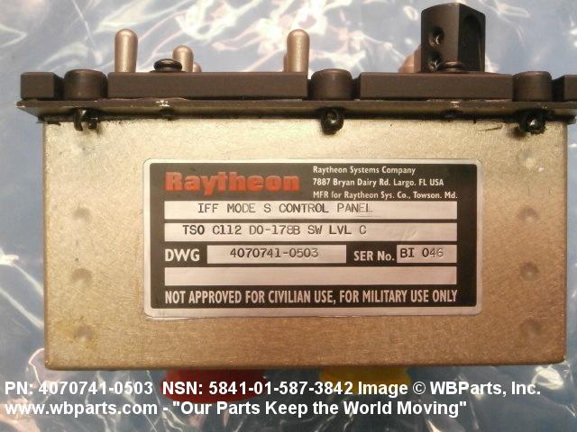 Part Alternates: 40707410503, 4070741-0503, 5841-01-587-3842, 01-587-3842, 5841015873842, 015873842